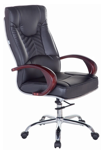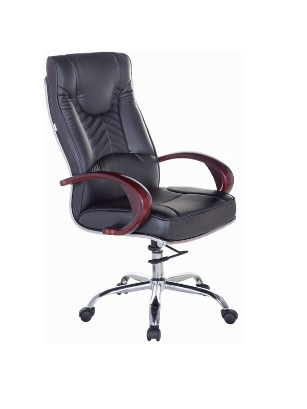 Mô tả sản phẩm: Ghế văn phòng lưng cao bọc Pu, tay gỗ, mâm ngã 2 cần, chân xoay inox 201